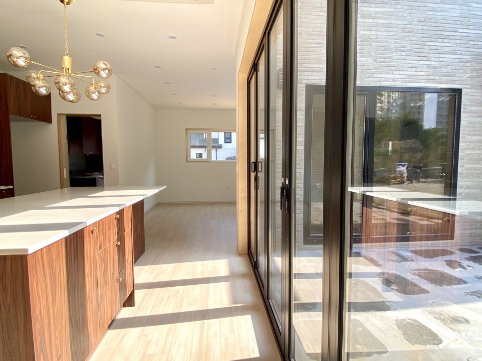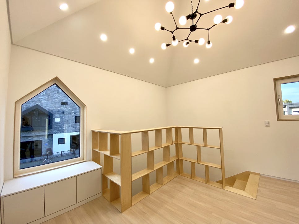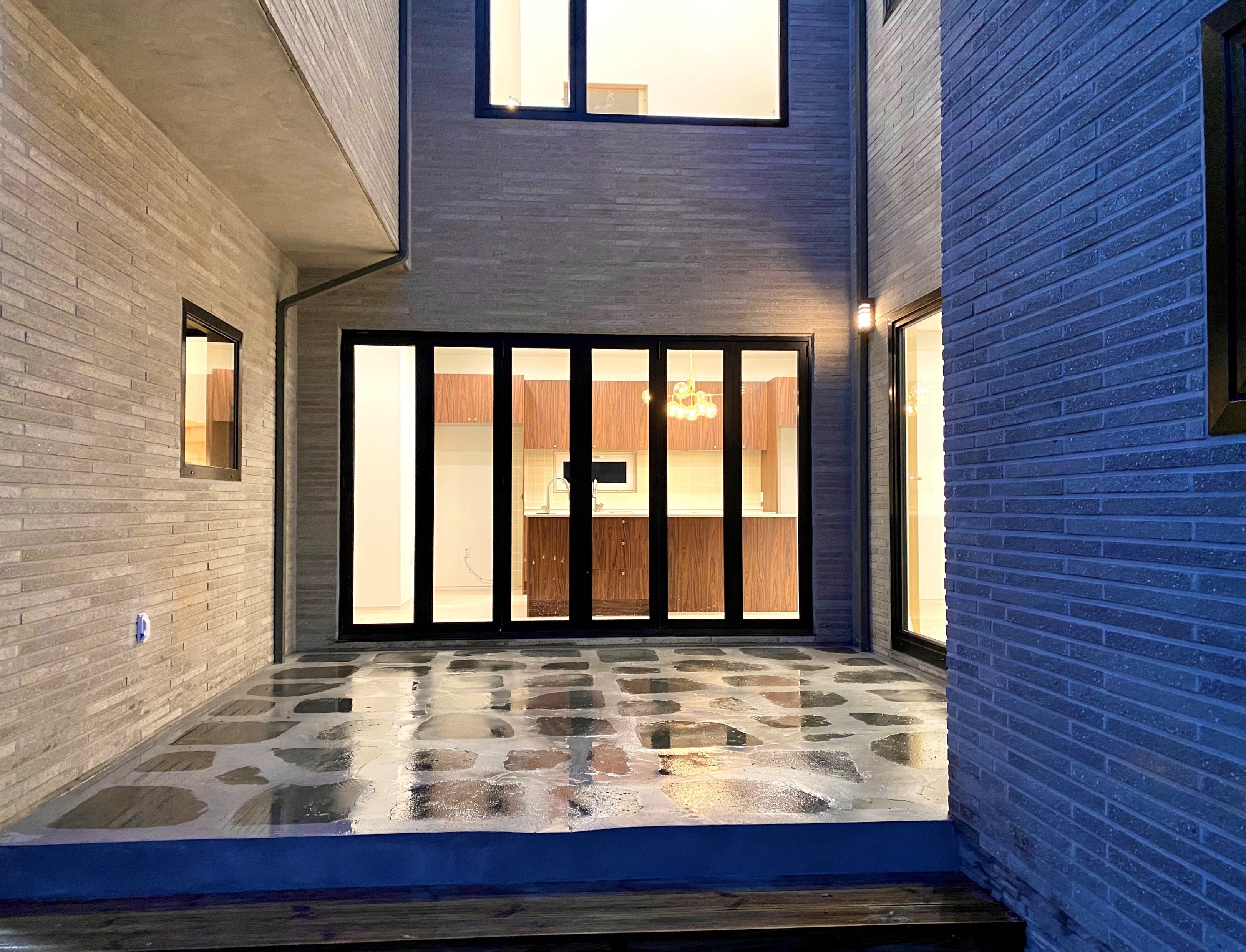 특히 삼각 지붕과 집 모양의 픽스창이 외관의 포인트가 되어 감각적인 분위기를 자아내는데 내부 이야기까지 궁금하게 하는 매력이 있다. 어린 아이나 반려견과 함께 생활하는 가족도 중정으로의 출입이 수월하고 모든 주공간에서 시선이 닿도록 설계한 점 또한 세심함이 묻어 있다.