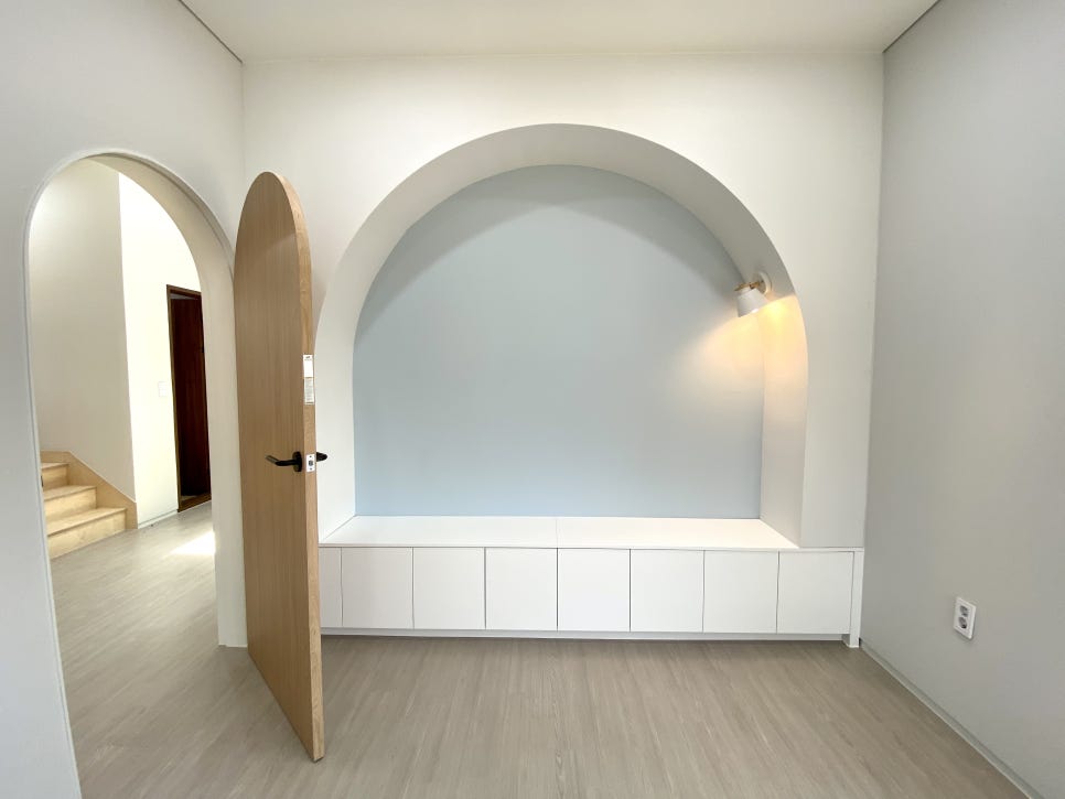 구성원들이 모여 소통하는 1층은 외부로 바로 출입하는 LDK 거실과 어닝창이 눈이 띈다. 반면 2층은 철저히 개인의 휴식에 포커징되었다. 이색적인 다락 공간 또한 구성원들의 라이프 스타일에 따라 채워지는 상상하는 즐거움을 더해준다.